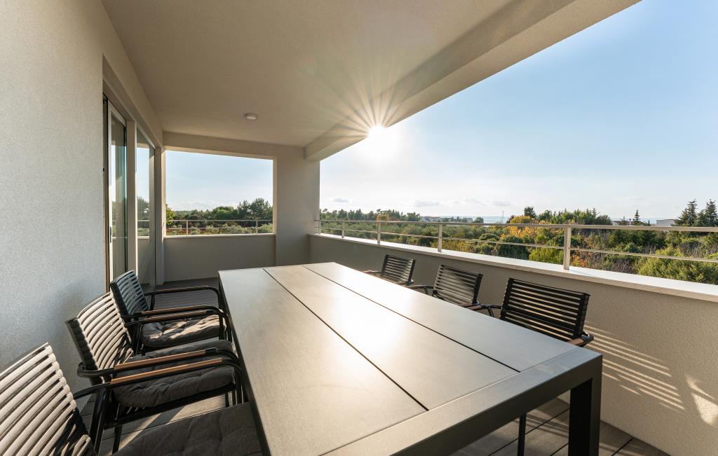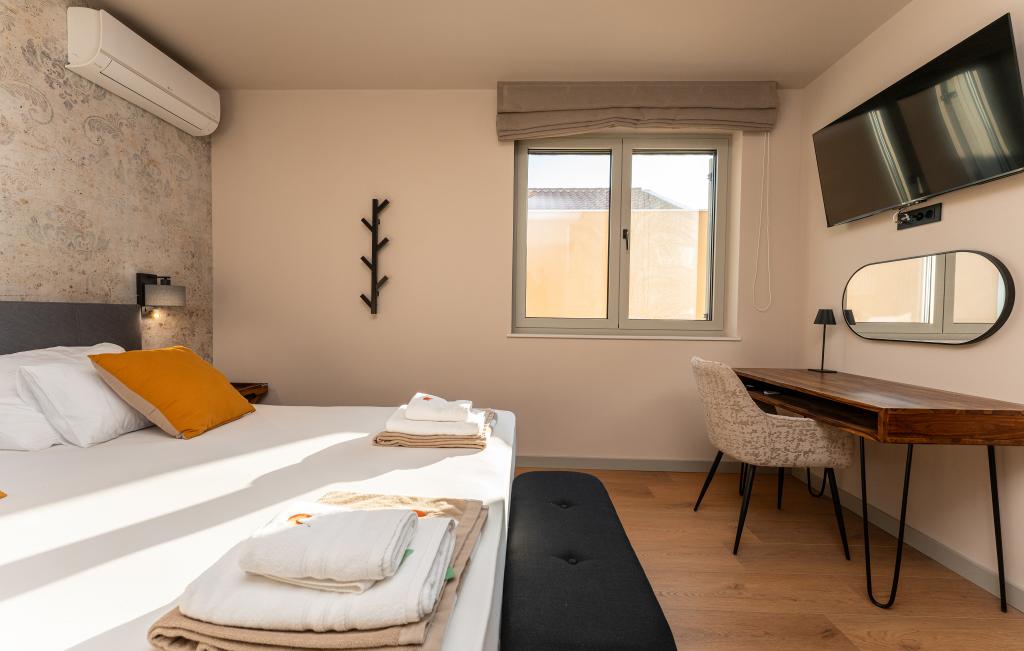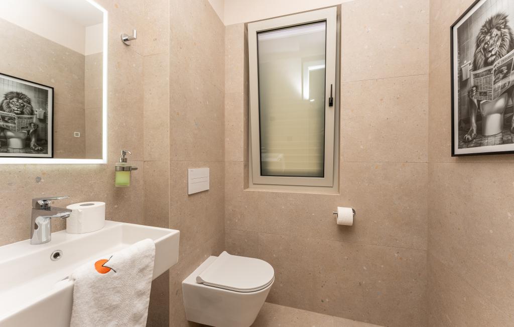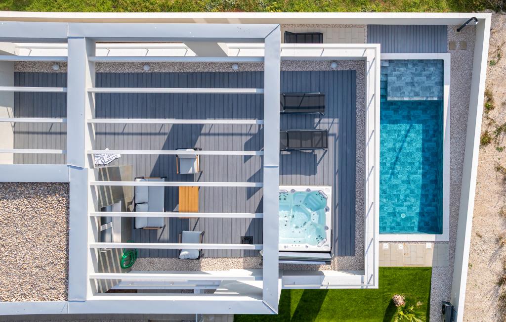 Casa de aproximativ 270 m² este situată în Zaton, la 12 km nord-vest de Zadar. Clădirea este nouă, finalizată în iunie 2025. În curtea împrejmuită există 4 locuri de parcare, 2 stații de încărcare pentru mașini electrice, o piscină încălzită de 30 m² și o terasă mare unde vă puteți bucura de umbră până după-amiaza. Casa are două apartamente, identice ca dispunere, fiecare cu living, bucătărie complet utilată, 3 dormitoare, 2 băi și o toaletă suplimentară. Toate camerele sunt dotate cu aer condiționat și fiecare este dotată cu un televizor inteligent. Casa este proiectată pentru 12 persoane. PS5 este situat în camera copiilor de la fiecare etaj al casei. Pe acoperișul casei există o terasă cu vedere la mare, o chicinetă suplimentară, mobilier de grădină și o cadă cu masaj pentru a vă bucura de timpul zilei și al serii. Vă puteți bucura de facilitatea noastră cu familia și/sau prietenii și puteți fi împreună, dar și separat (fiecare în propriul apartament) atunci când aveți nevoie. În timpul zilei, cu siguranță vă veți bucura de piscină și de umbra oferită de terasa inferioară, în timp ce seara vă veți bucura de acoperiș.